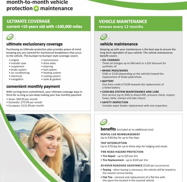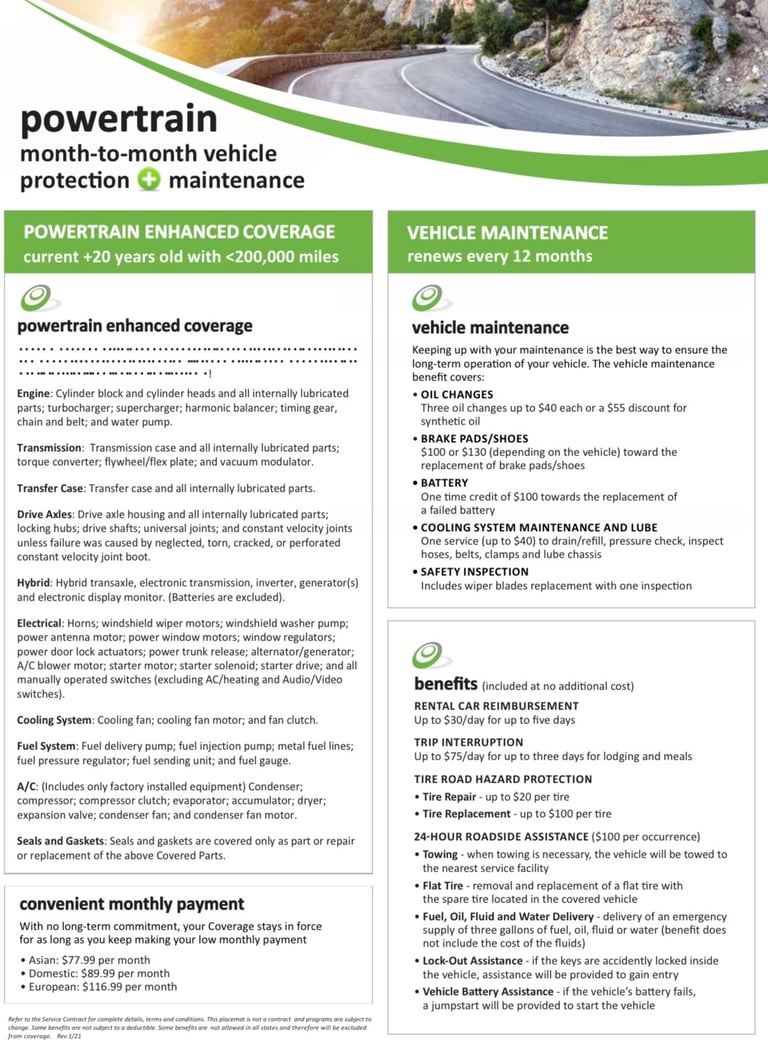 Una reparación importante en un auto puede costar hasta el 80% del valor del vehículo. Con nuestra garantía extendida, evitas sorpresas: elige uno de nuestros planes y cubre futuros problemas mecánicos sin preocuparte por los altos costos. Protege tu inversión y mantén tu auto siempre en las mejores condiciones. ¡La confianza en la carretera comienza aquí!
